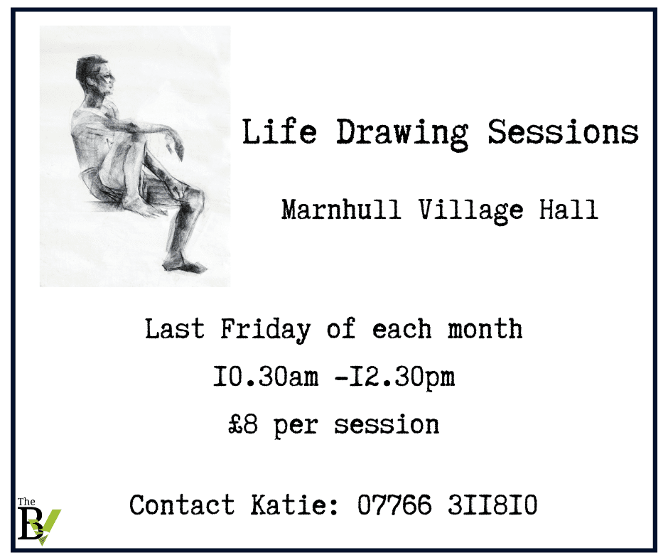 Friendly life drawing sessions, all abilities welcome. At Marnhull Village Hall 10.30am - 12.30pm Last Friday of each month. £8 per session Contact Katie on 07766 311 810